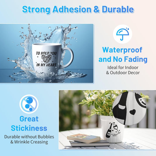 EPRCUT Black Permanent Vinyl Compatible with Cricut, FT Glossy Adhesive Vinyl Roll for All Cutting Machine Craft Cutter, DIY Art Decor for Indoor & Outdoor Decoration, Wall Sticker, Car Decals