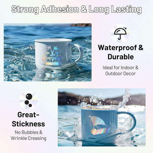 Eprcut Holographic Silver Permanent Vinyl, 12" x 6FT Adhesive Vinyl Roll for All Cutting Machine, Cricut, Silhouette, Cameo Cutters, Home Outdoor Waterproof DIY Craft Decor, Car Decals, Wall Stickers